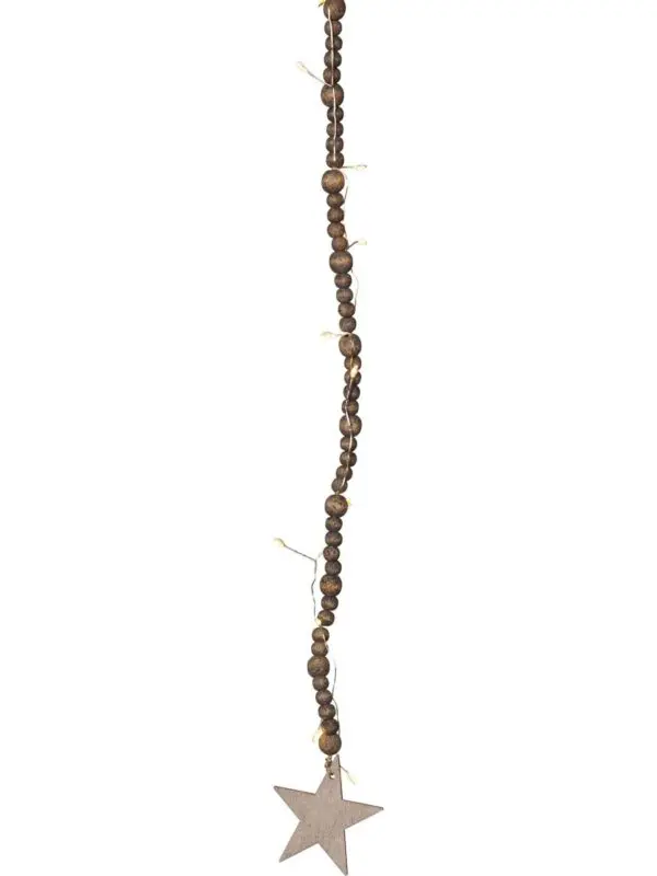 Beady on 150 cm pitkä valosarja puuhelmillä ja 30 lämpimän valkoisella LED-valopisteellä. Sopii sisäkäyttöön esimerkiksi pöytäkoristeeksi tai joulukuusen koristeeksi.