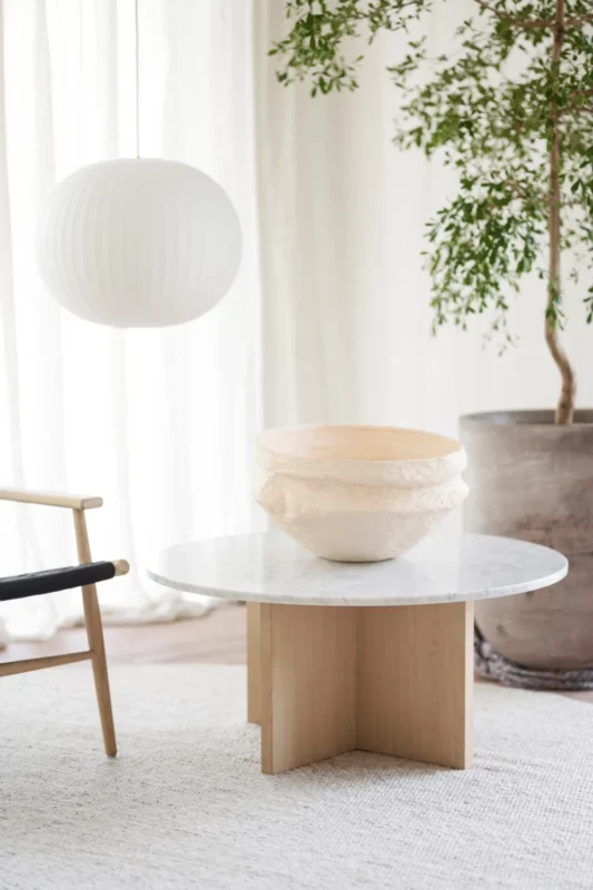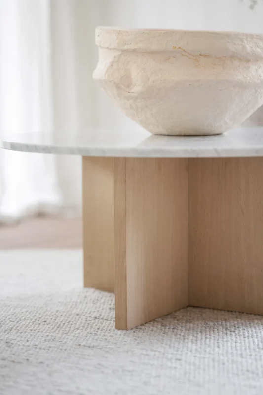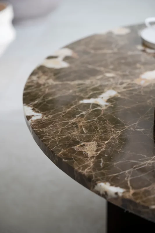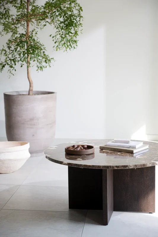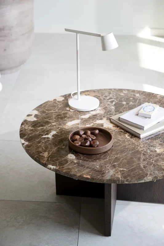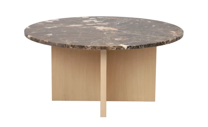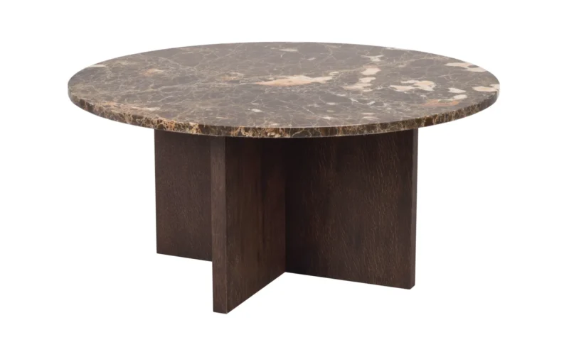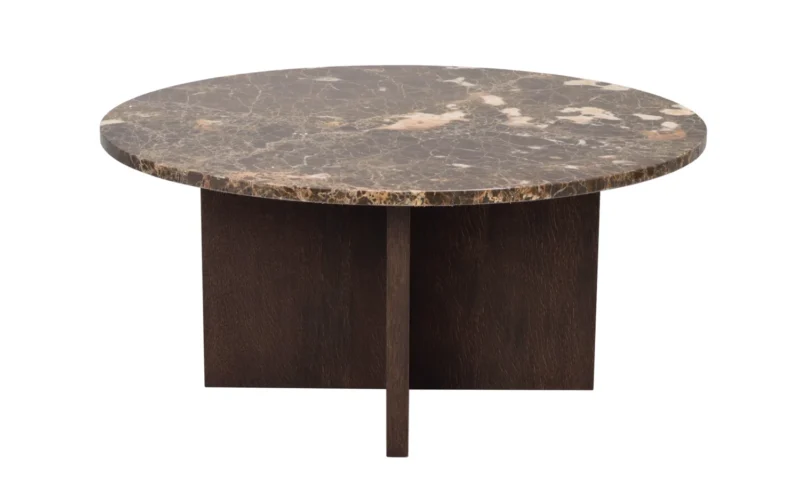 Ylellinen japanilainen Brooksville sohvapöytä, jossa skandinaavinen muotoilu kohtaa japanilaisen minimalismin. Pyöreän muotoinen pöytälevy eksklusiivisesta Emperador-marmorista yhdessä FSC-sertifioitujen ruskeiden puisten jalkojen kanssa antavat sinulle kestävän sohvapöydän ja rauhallisen tunnelman huoneessa. Sohvapöytä on osa Brooksville-sarjaa, jossa voit valita ruskean tai kalkitun puun ja pyöreän tai neliömäisen pöytälevyn välillä ruskeaa tai valkoista marmoria. Huomaa, että marmori on luonnonkivimateriaalia, mikä tarkoittaa, että väripoikkeamia ja epätasaista pintaa voi esiintyä.
