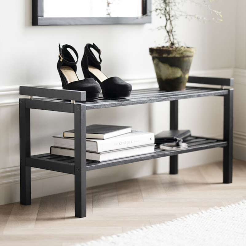 Rowico Confetti puinen kenkäteline. Tämä kenkäteline on osa Rowicon Confetti eteiskalustesarjaa.