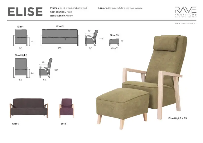 Saatavana myös Elise low tuoli matalalla selkänojalla.