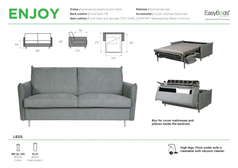 Enjoy vuodesohva 186 cm joustinpatjalla HR1