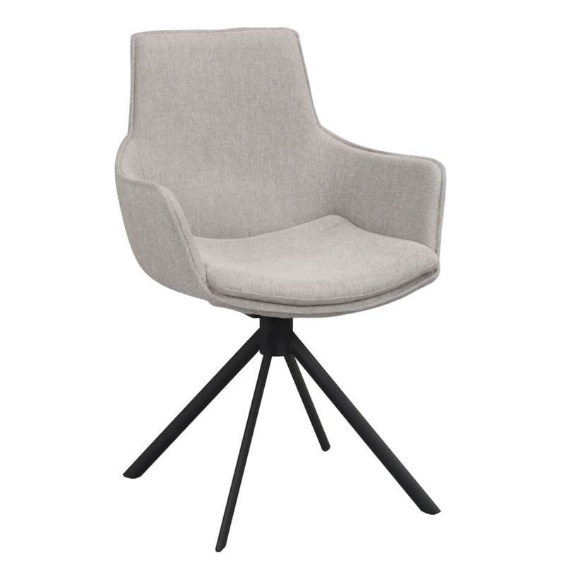 Rowicon Lowell tuoli ei ole mikä tahansa ruokailutuoli, sillä sen jalusta mahdollista istuinosan kääntämisen eli tuoli on pyörivä. Metallijalusta. Verhoiltu harmaalla kankaalla.