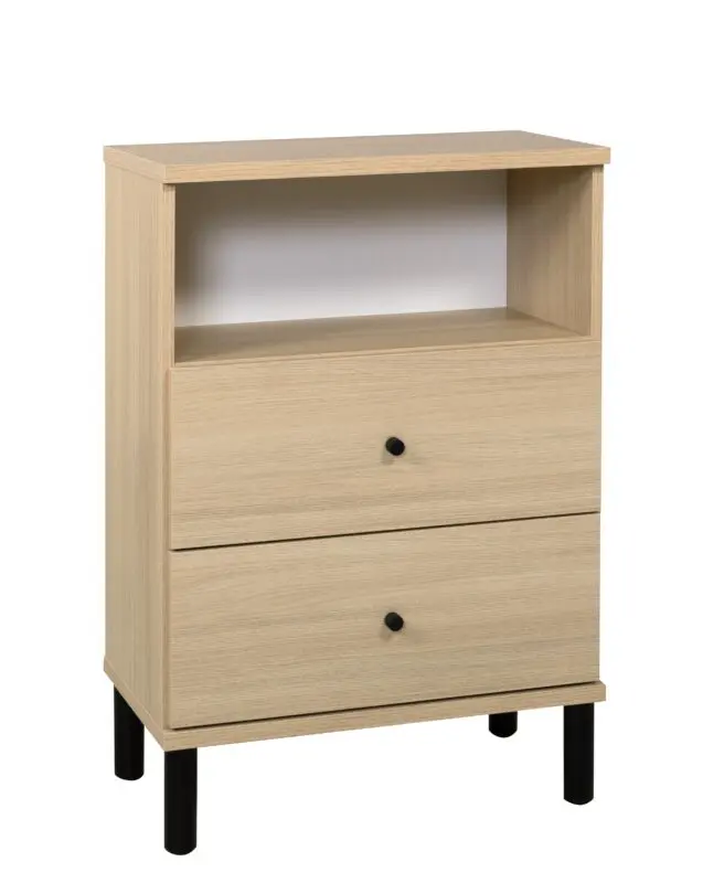 Olki Lipasto Nro 25 on kahdella laatikolla ja yhdellä avohyllyllä. Tämä näppärä laatikosto käy vaikka yöpöydäksi!