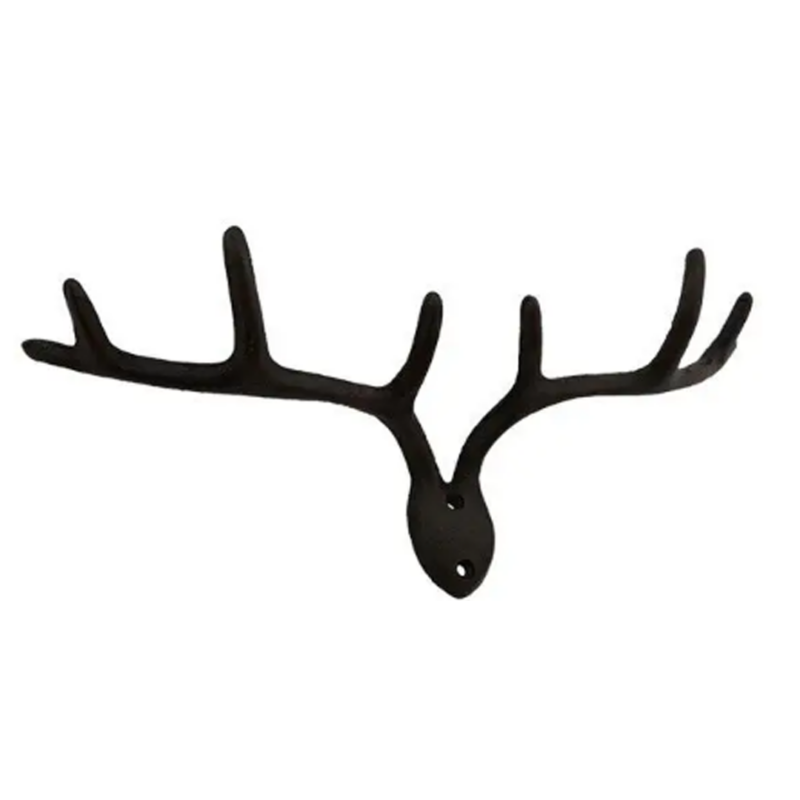 Kaunis poronsarvi naulakko on ruskeaa taottua metallia. Koukut ovat napakat, mutta niissä roikkuu hyvin niin takki kuin vaikka pyyheliina. Naulakkoa ei suositella käytettäväksi ulkona koska se voi ruostua. Tämä kestosuosikki on lappisisustusta parhaimmillaan!