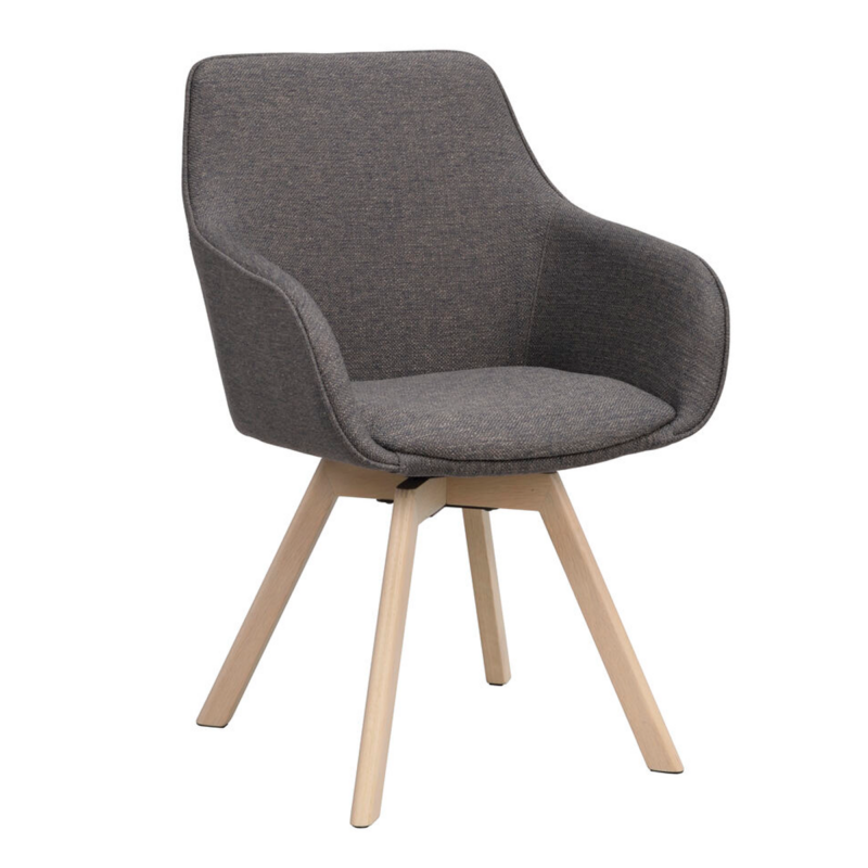 Pyörivä malliRowico Alison käsinojallinen tuoli harmaa kangas/ tammijalat