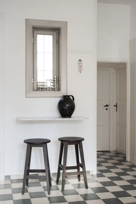 Rowicon pelkistetty Austin baarijakkara, jota on mahdollista käyttää myös esimerkiksi kukkapöytänä tai korkeana yöpöytänä jenkkisängyn kanssa.