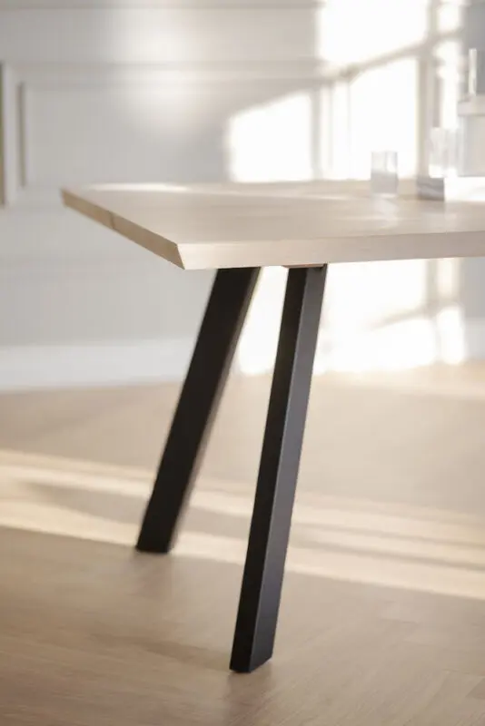 Moderni ja tyylikäs Rowico Fred tammipöytä. Kansi muodostuu kahdesta lankusta, joiden väliin jää pieni rako. Kansimateriaali SFC-sertifioitua tammea, jalat pulverimaalattua metallia. Kannen reuna tyylikkäästi viistottu.