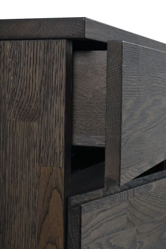 Moderni ja tyylikäs Rowico Fred senkki. SFC-sertifioitua tammea, jalat pulverimaalattua metallia.