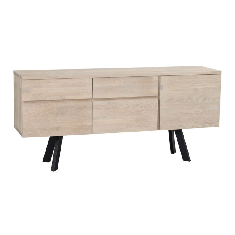 Moderni ja tyylikäs Rowico Fred senkki. SFC-sertifioitua tammea, jalat pulverimaalattua metallia.