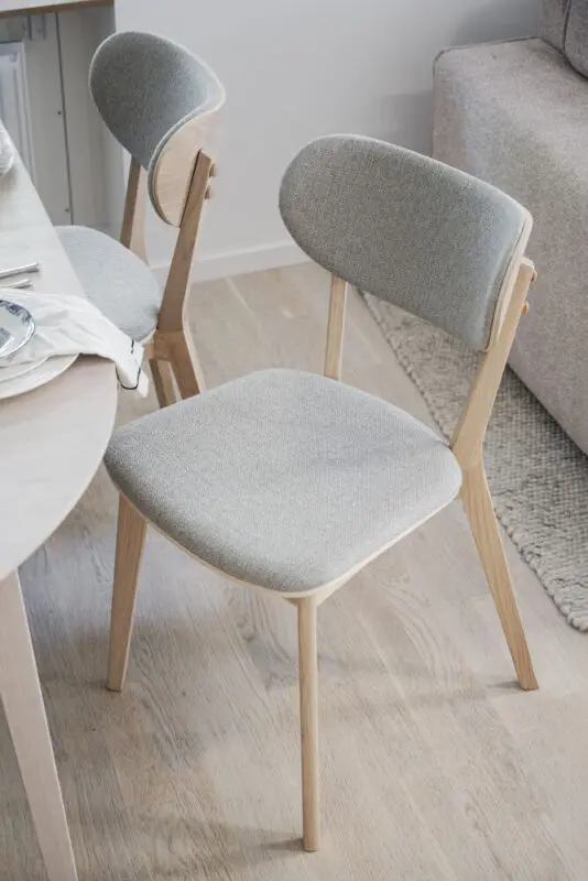 Rowico Kato ruokapöydän tuolit sopivat osaksi skandinaavista sisustusta. Tuolin runko on valmistettu SFC-sertifioidusta tammesta ja sen istuin sekä selkänoja on pehmustettu ja verhoiltu.