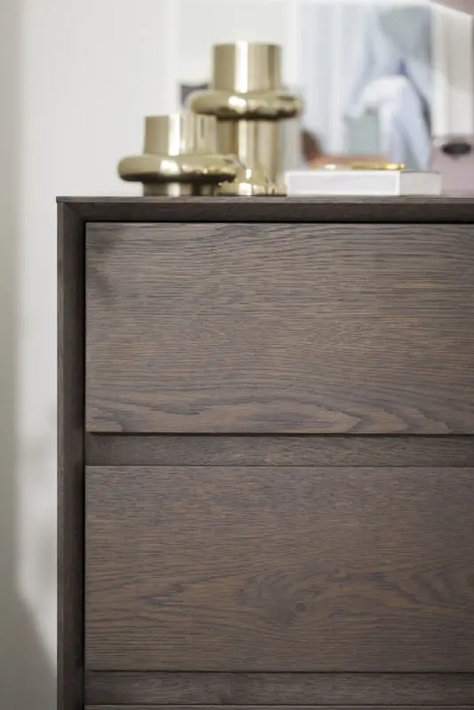Rowicon Mackay sarjan kalusteet on valmistettu massiivitammesta sekä tammiviilusta, jossa näkyy aidon tammen luonnolliset värivaihtelut. Lipaston materiaali on SFC®- sertifioitua tammea. Lipastossa on 4 laatikkoa, joissa on soft close-mekanismi. Mekanismi mahdollistaa laatikoiden pehmeän sulkeutumisen.