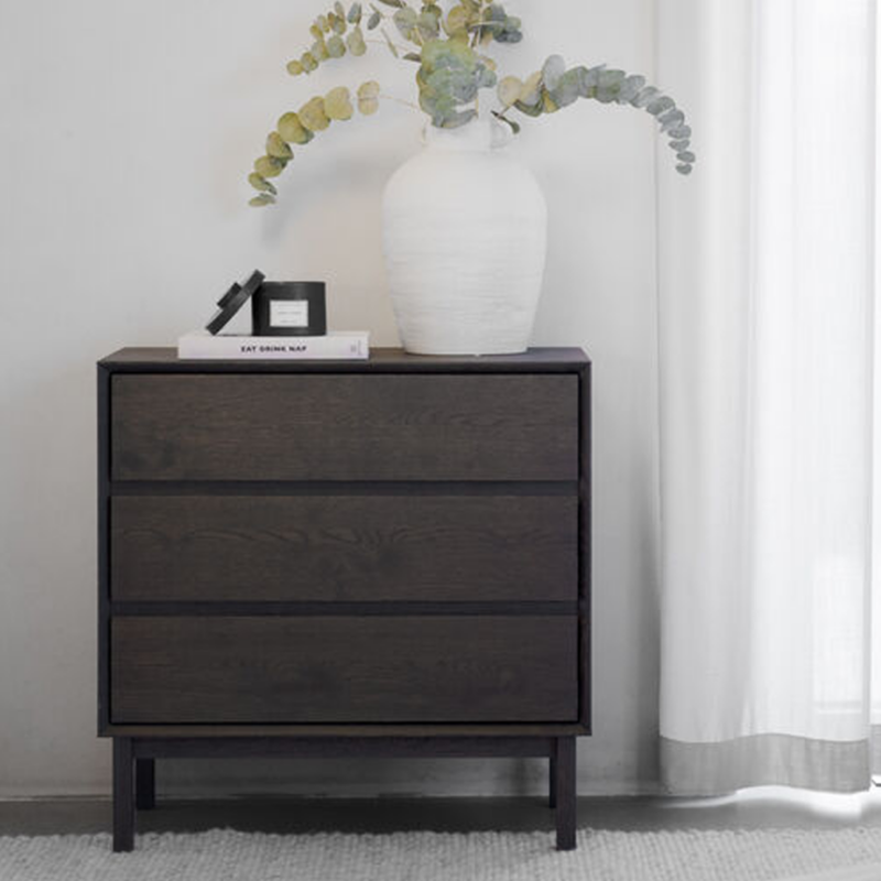 Rowico Mackay lipasto 3-laatikkoa, ruskea tammi