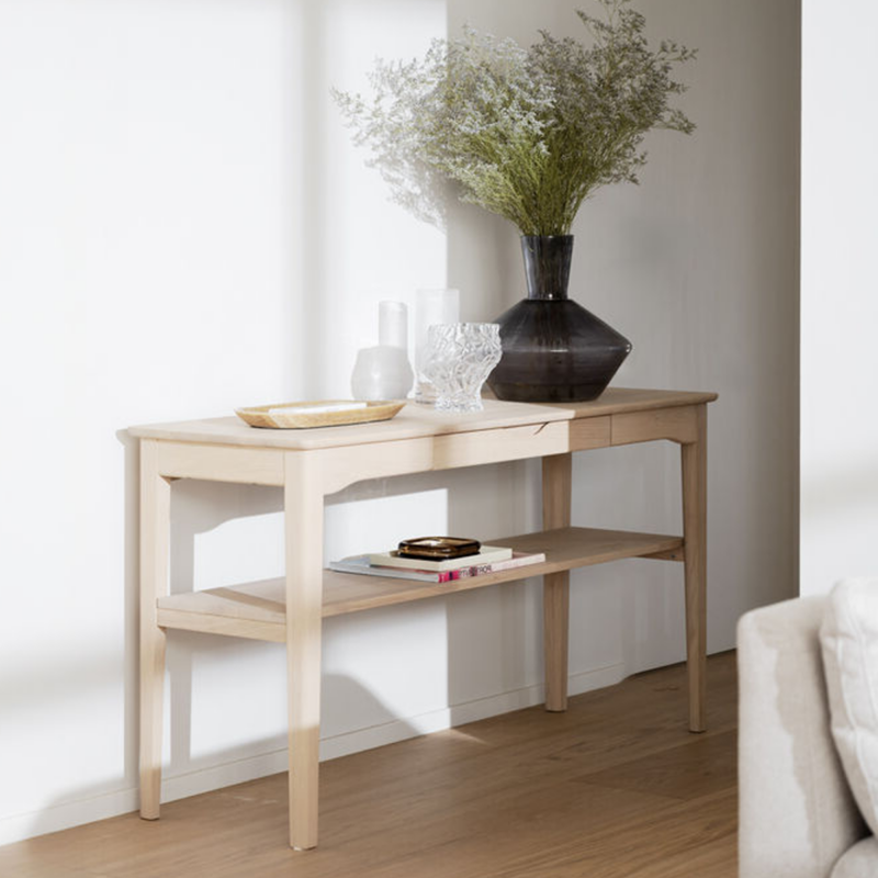 Rowico Markham sivupöytä sopii osaksi eteisen tai olohuoneen sisustusta. Pöydässä on yksi vetolaatikko. Materiaali massiivitammea.