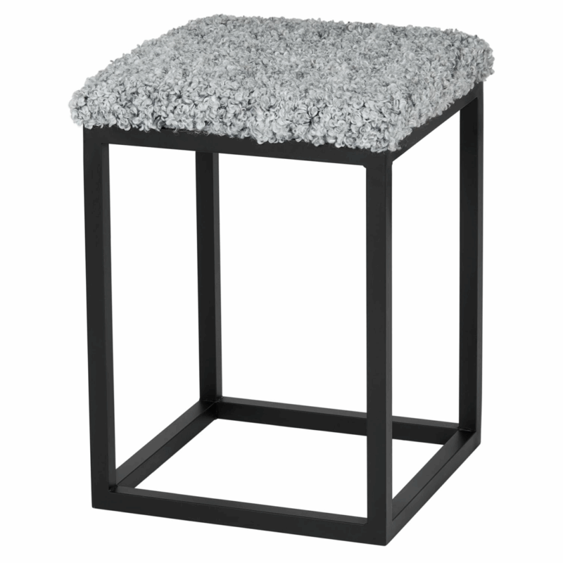 Eteispenkki jossa istuinpehmusteena tyylikäs lampaannahka jäljitelmä teräsrungossa. Käytä lisäistuimena tai kauniina sisustusyksityiskohtana.