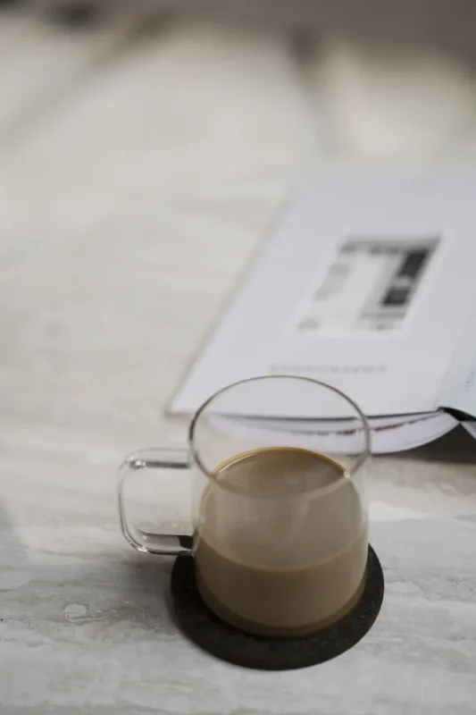 Muista käyttää pöytäliinaa tms. ja pyyhkiä roiskeet välittömästi pois pöydän ulkonäön säilyttämiseksi. Huomioithan, että travertiini on luonnonkivimateriaali, mikä tarkoittaa, että väripoikkeamia ja epätasaista pintaa voi esiintyä. Pienet ontelot eivät ole vikoja, vaan jokaisen pöydän ainutlaatuisia ominaisuuksia.