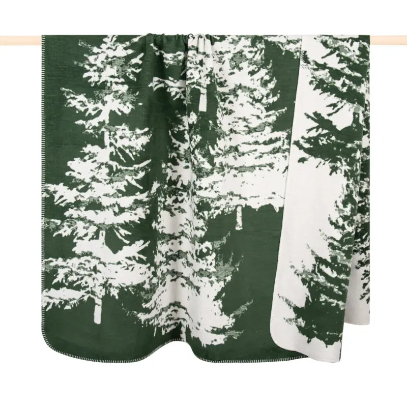 Pine, mäntykuvioinen huopa tuo palan mäntymetsää olohuoneeseesi ja kutsuu rentoutumaan. Puukuosi hurmaa talvisen metsän tunnelmalla.