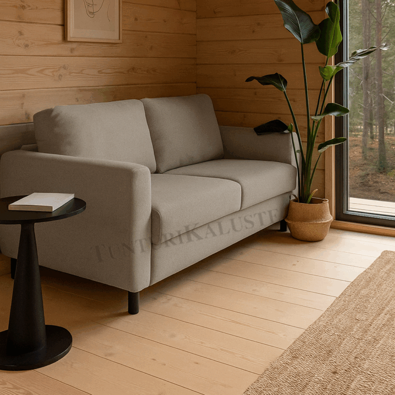 Unicon valikoiman Iida vuodesohva helppokäyttöisellä jenkkimekanismilla. Sohvan hinta sisältää 140x200cm kokoisen memorypatjan, joten hyvän istuinmukavuuden lisäksi sohvasta avautuvassa vuoteessa on hyvä nukkua. Memorypatja muotoutuu nukkujan kehon lämmön ja painon mukaisesti.