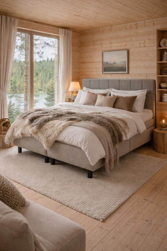 Huom! Sisustuskuva muodostettu koneellisesti – tarkista sängynpäädyn tikkaus sekä verhoiluväri tuotekuvasta.