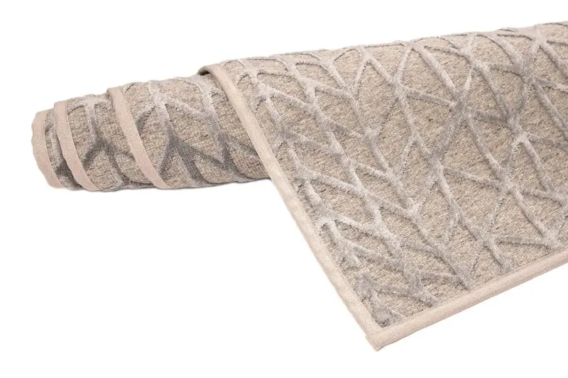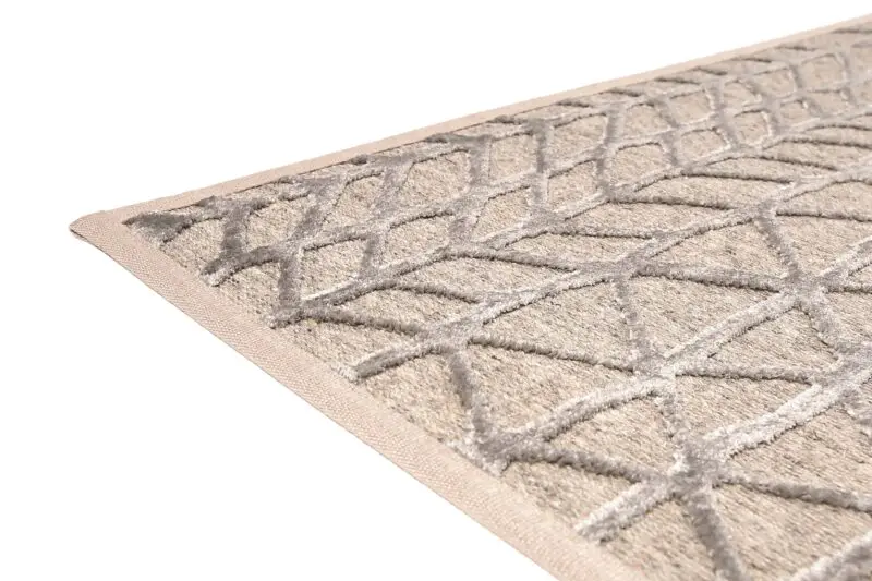 Lastu-maton pinta on mielenkiintoisen kohokuvioitu. Matossa on villapohja, johon on kudottu miellyttävän pehmeä viskoosinukka. Maton reunat on kantattu kapealla pellavakantilla.