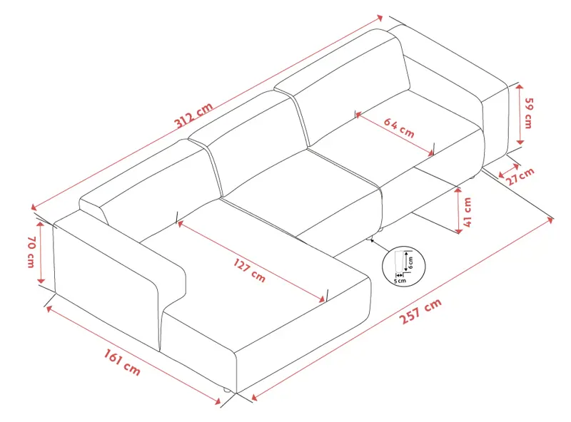 Istuinleveys 257 cm